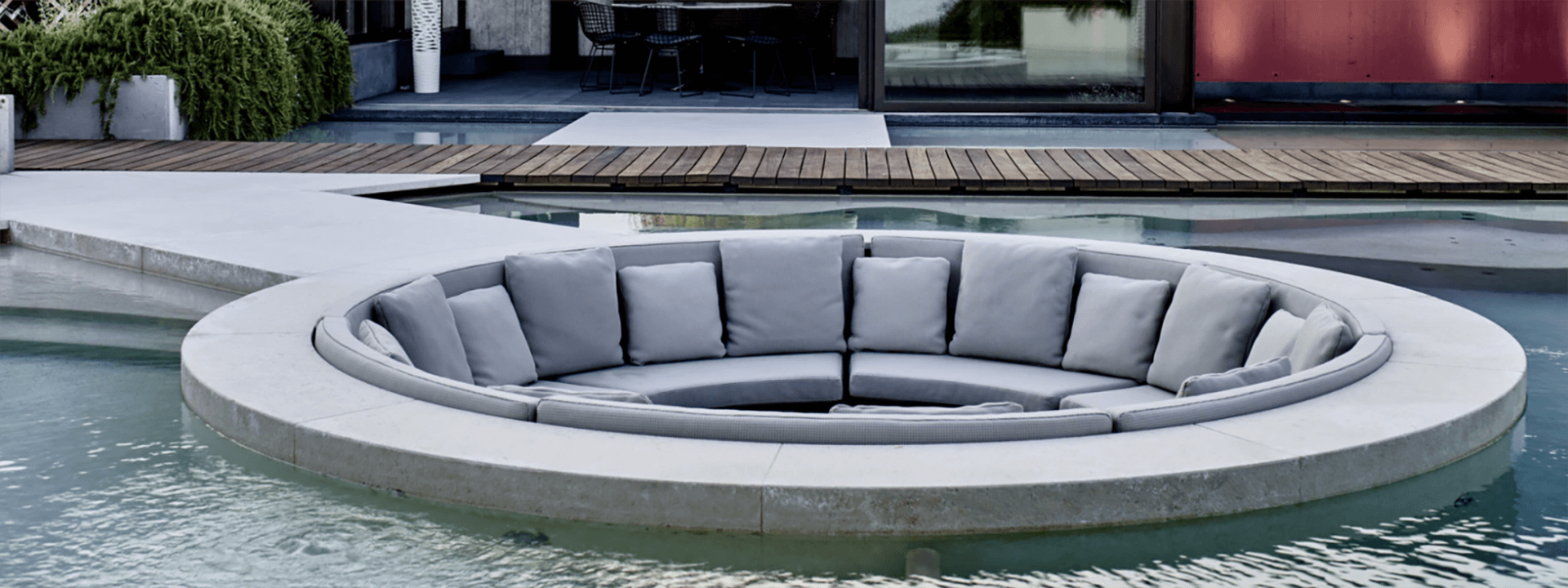 Outside of a firepit, bench seating is another design concept that’s all the rage. Whether indoors or outdoors, bench seating provides versatile and informal seating options for your home. The benefit of using composite decking to create bench seating is that you can blend your flooring into the seating area, and visually extend your garden entertaining space. Built-in garden design features always add value to your home as well.