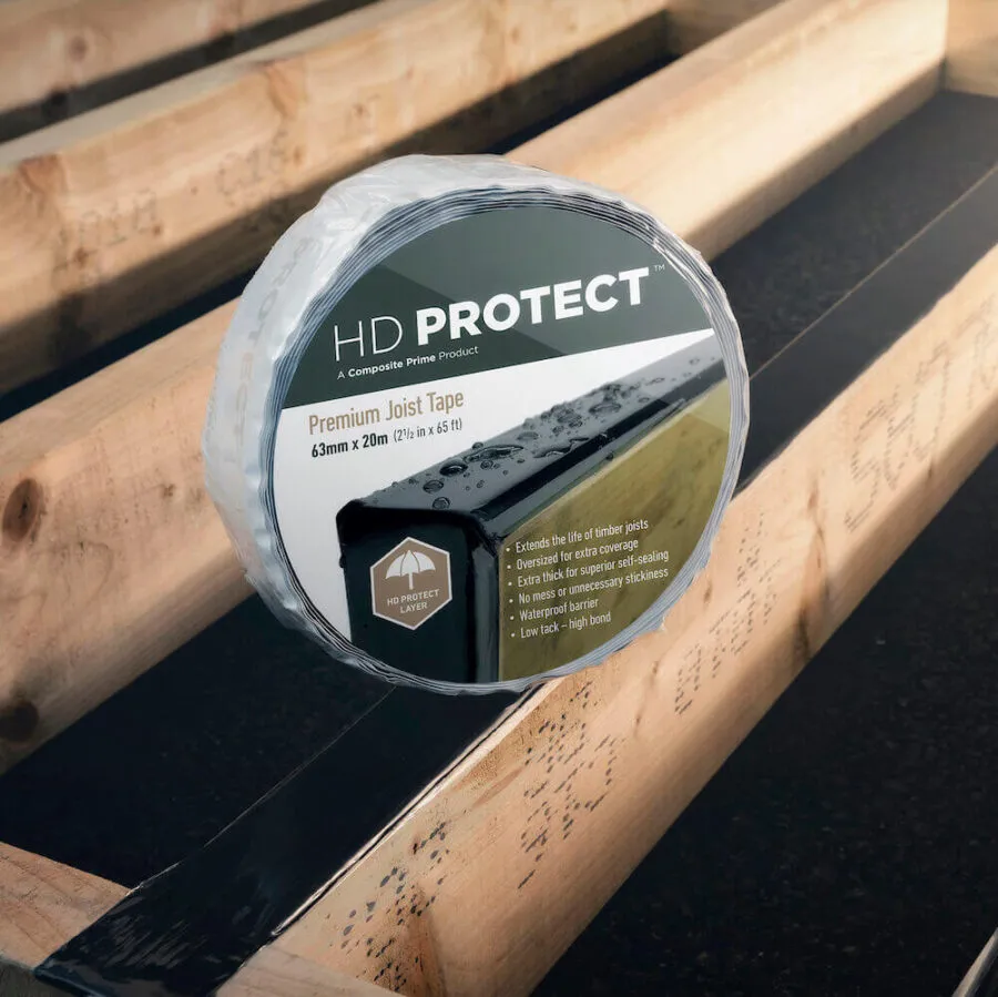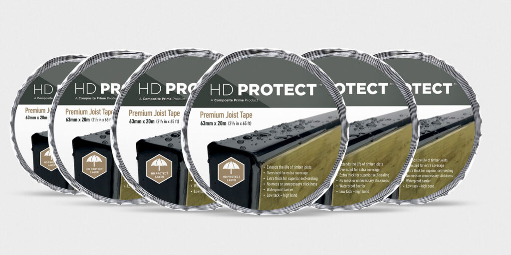 You can buy tape alongside your composite decking boards. The tape can be used to fully wrap the joists or you can lay strips across the top and the edges of the timber. Our HD Protect™ tape is not only perfect for the job, but it’s the only tape you can use with your composite deck that won’t invalidate your warranty. You can buy it from many of our stockists, including Amazon.