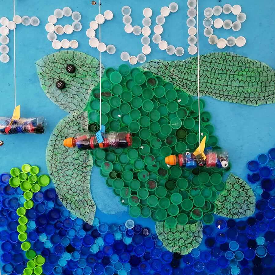 The eponymous competition spurred students to create over 100 sculptures. Taking inspiration from both aquatic and land-dwelling creatures they would like to protect from plastic pollution, students crafted their pieces using repurposed plastic. The materials used included plastic bags, netting, bottles and, of course, bottle tops.