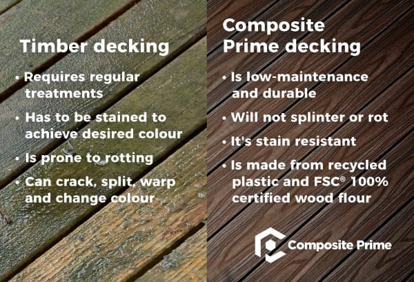 It lasts much longer! As it is a plastic product, composite decking will not rot or decay, meaning it’s durability will hold throughout the years. As well as this, it will look nice all year round, which makes the composite decking a more aesthetically pleasing choice.