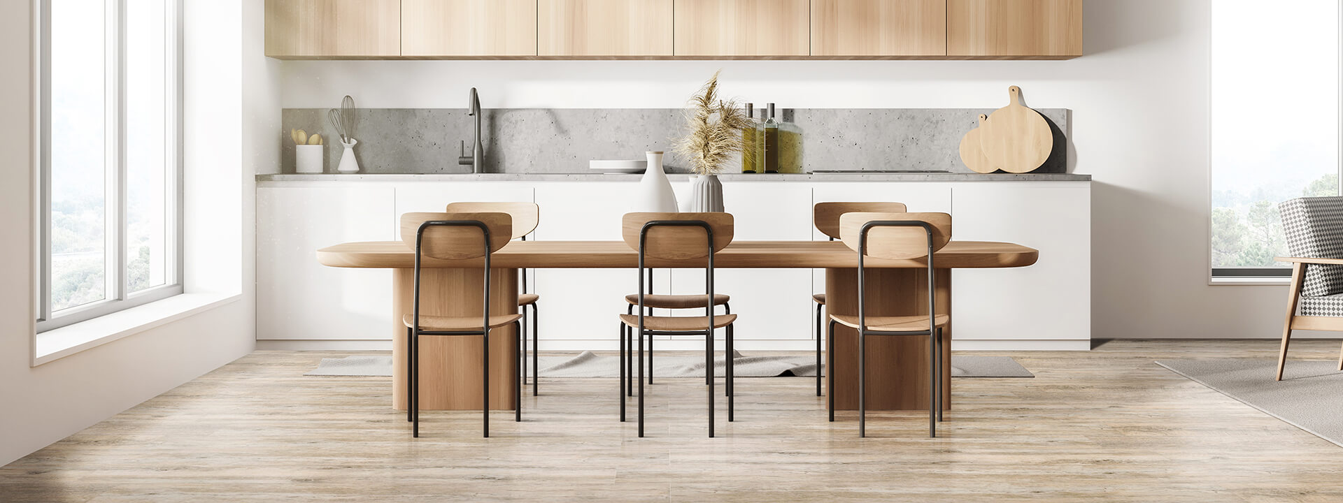 Available in a wide range of colours and finishes, including multiple different woodgrain and stone finishes and colours, you can create the exact aesthetic you envisage for your home using composite materials. Touchstone Flooring™ is also UV stable, so you don’t need to worry about flooring by windows or skylights fading or degrading faster than flooring in areas with less UV exposure.
