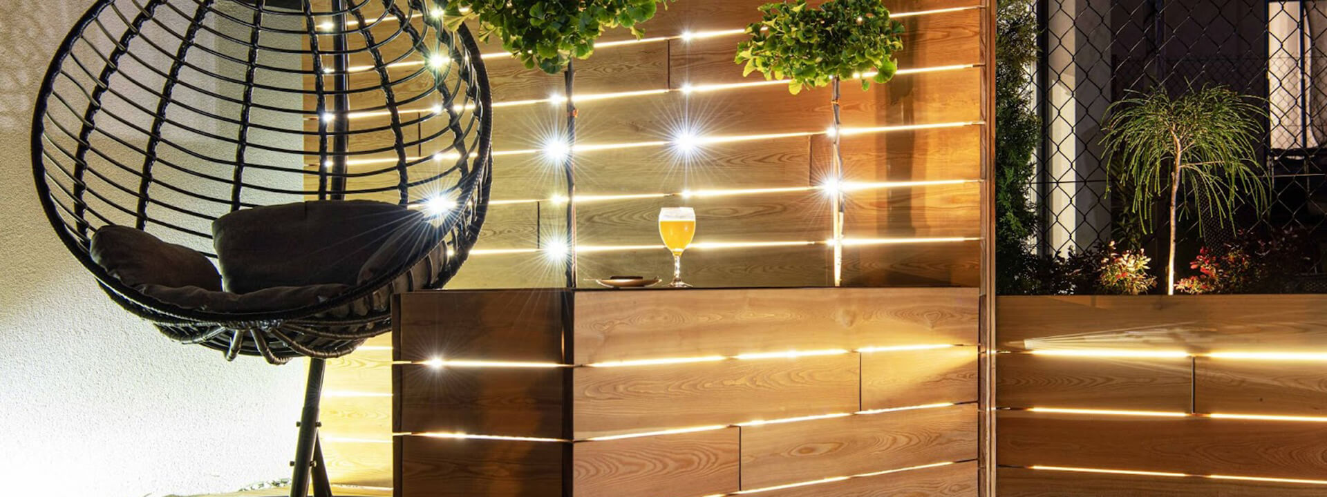 For evening entertaining in your outdoor space, lighting is everything. Not only is it practical and safety-conscious. Guests need to see where they’re going, and sitting in the dark is not usually most people’s idea of a great social occasion. Lighting sets the scene and builds the atmosphere. You can use it to reflect your personality, and the vibe you want to create: Romantic and boho? Glamorous and sophisticated? Relaxed and beachy? Eclectic and high energy? Options include string lights, tapered candles in sand, hurricane lanterns, illuminated pathways, disco lights and waterproof neon signs.