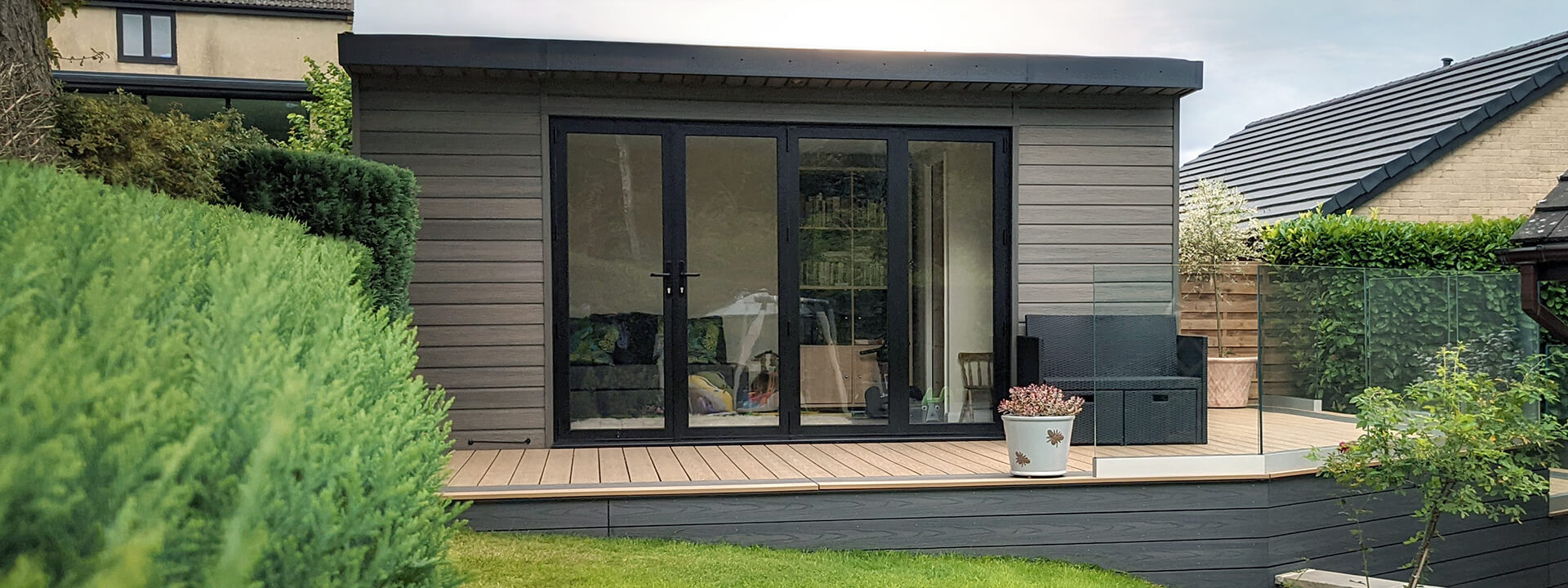 Cladding your garden room with composite boards has a myriad of benefits. Not only does it look the business, and provides all the external weatherproofing you’d expect, it enhances the functionality of your garden room. Whether you use it for guest accommodation, an office, a gym, a studio, a playroom, or an entertaining space, none of those uses wouldn’t be improved by increased heat and sound insulation. Maintaining a more stable ambient temperature in your garden room is always an important aim; keeping sounds out (or in) is a bonus.